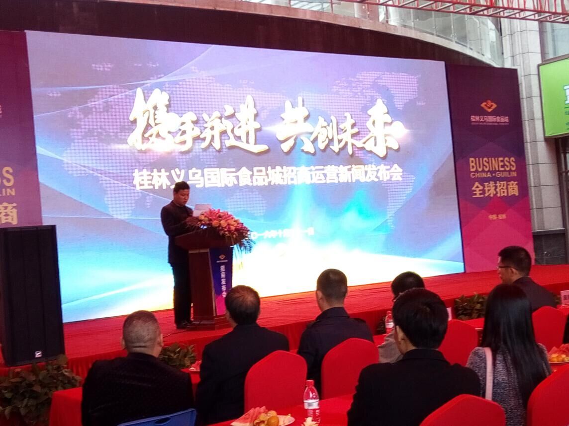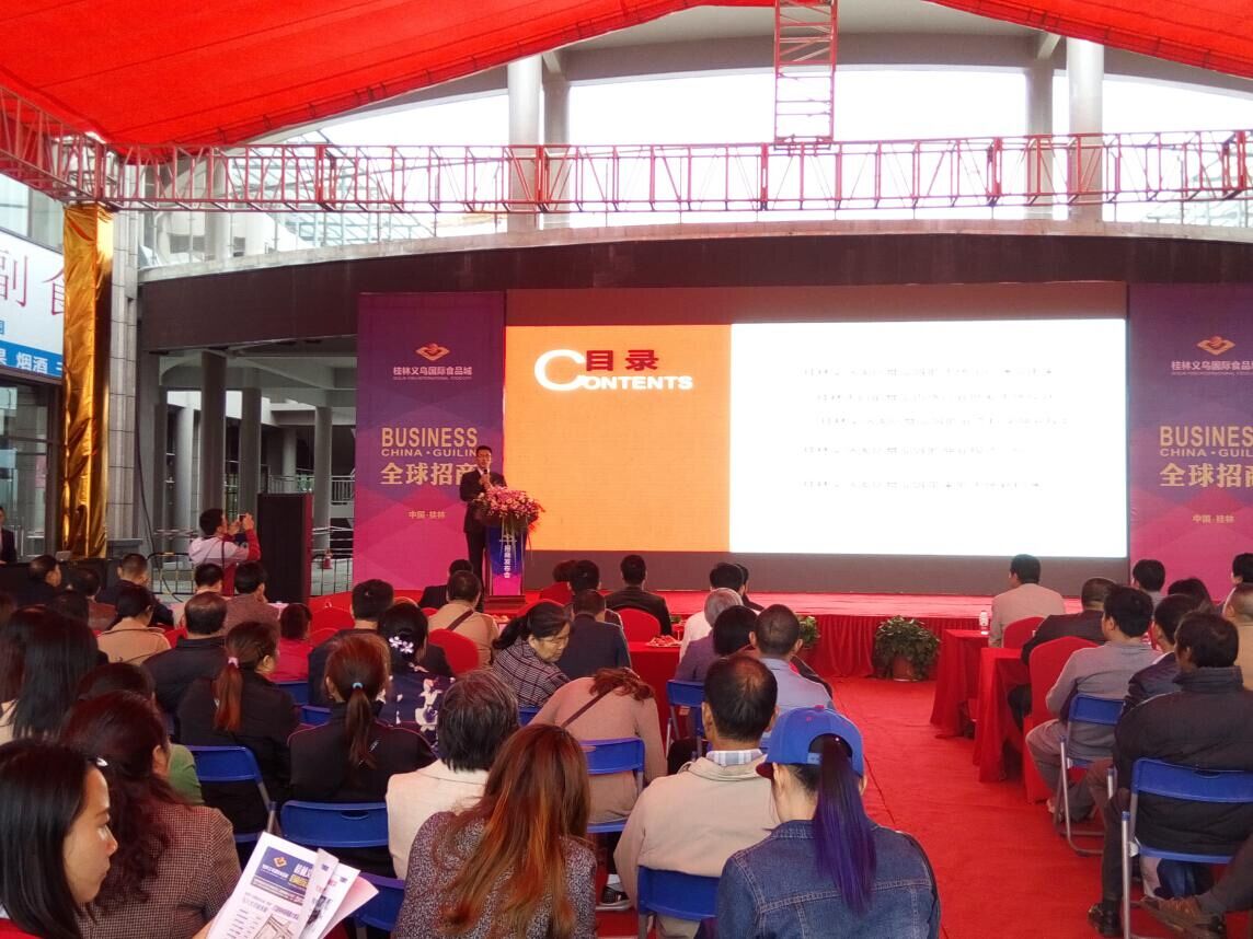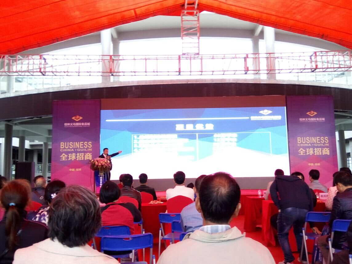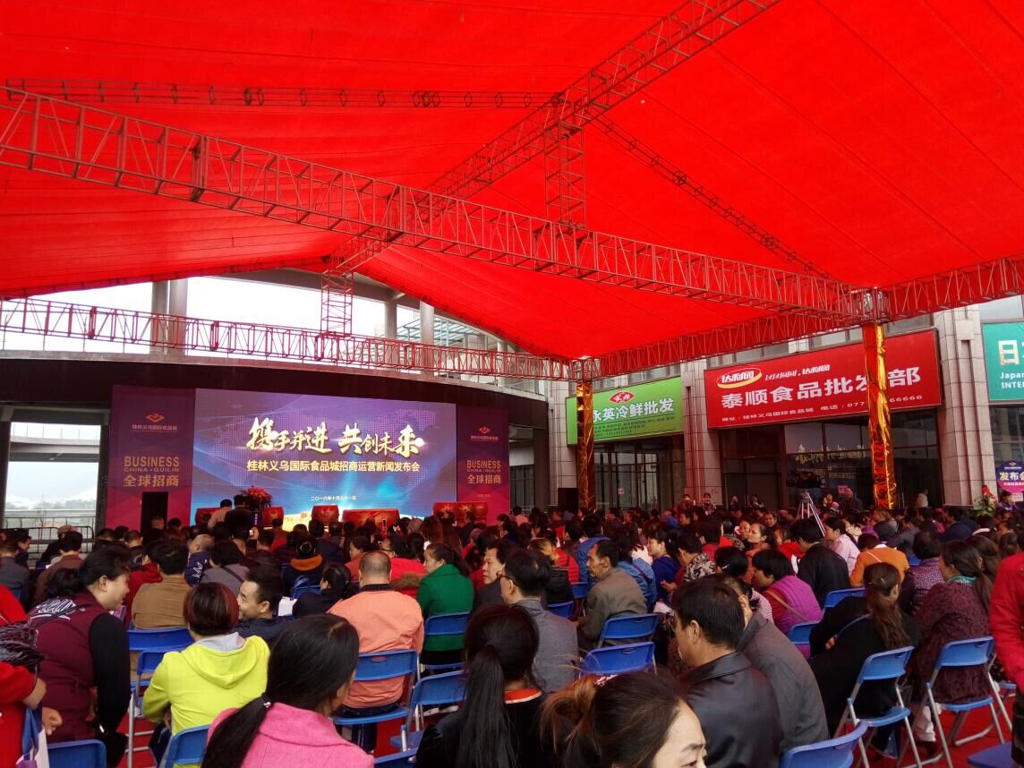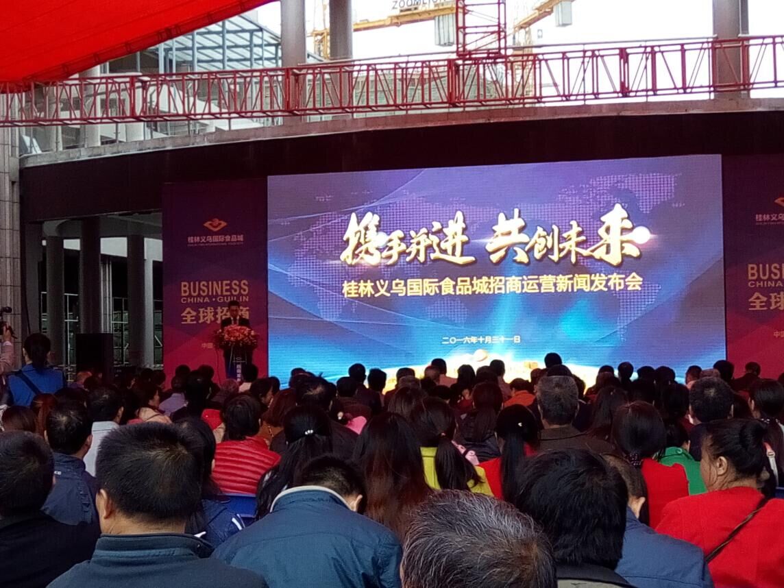 沒有華麗的場面鋪張,沒有狂轟濫炸的廣告宣傳,10月31日,桂林義烏國際食品城招商運營新聞發布會低調而有格調地綻放了。與低調宣傳形成鮮明對比的是現場火爆的氣氛,千平米活動中心廣場,高朋滿座,賓客云集。