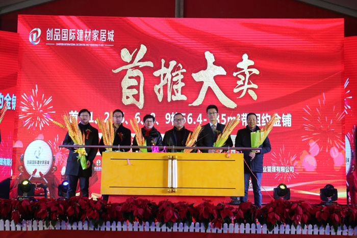 開盤儀式隨著創品國際董事長陳春平先生敲響銅鑼聲中宣布創品國際建材家居城正式開盤。