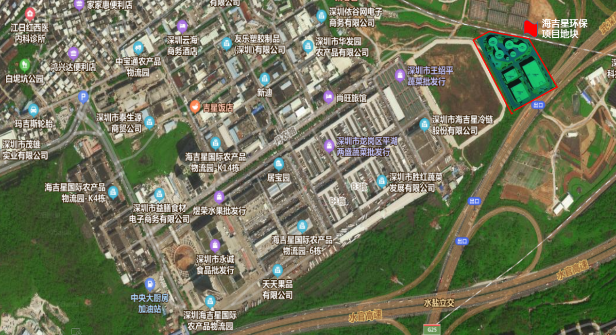上圖為:深圳平湖海吉星農批市場及環保項目地塊