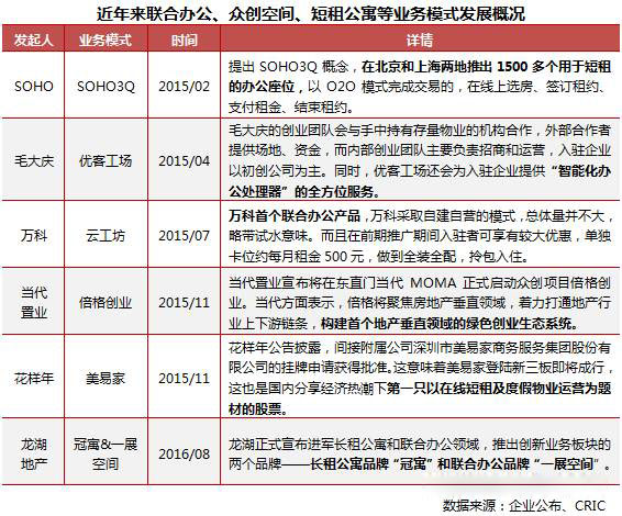 近來,國(guó)家不斷出臺(tái)支持創(chuàng)業(yè)的政策。2015年3月,國(guó)務(wù)院辦公廳印發(fā)《關(guān)于發(fā)展眾創(chuàng)空間推進(jìn)大眾創(chuàng)新創(chuàng)業(yè)的指導(dǎo)意見》,推進(jìn)大眾創(chuàng)業(yè)。接著,4月國(guó)務(wù)院又頒布《關(guān)于進(jìn)一步做好新形勢(shì)下就業(yè)創(chuàng)業(yè)工作的意見》,并提出了“推進(jìn)創(chuàng)客空間等孵化模式”、“眾創(chuàng)空間稅收**”等鼓勵(lì)創(chuàng)業(yè),再一次細(xì)化支持眾創(chuàng)空間的政策落實(shí)。今年以來各地也推出了不同的眾創(chuàng)空間鼓勵(lì)細(xì)則,加之商辦物業(yè)供過于求的現(xiàn)狀,也促進(jìn)了房企積極謀求聯(lián)合辦公、眾創(chuàng)空間、短租公寓等模式的探索。